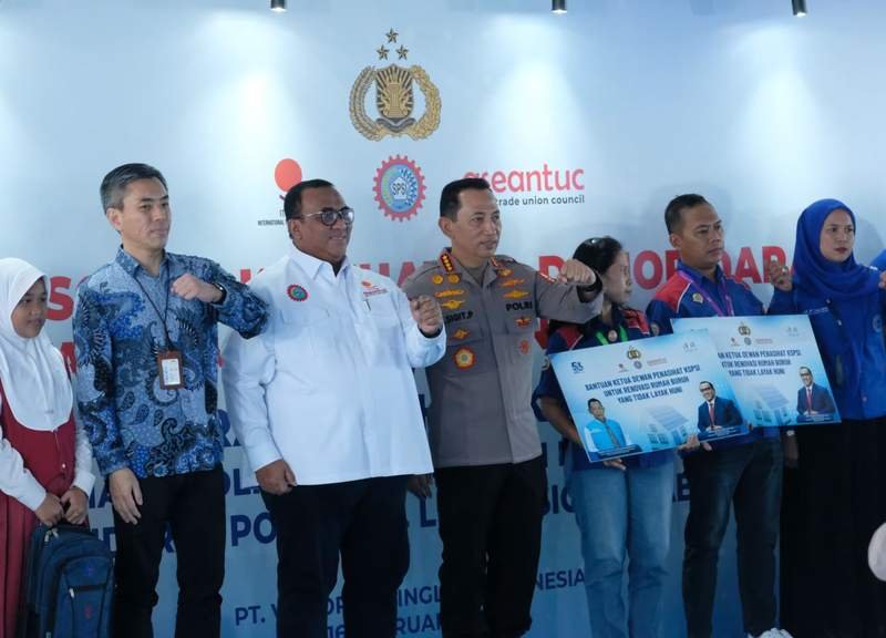 Tangerang – Kapolri Jenderal Polisi Drs. Listyo Sigit Prabowo menghadiri kegiatan Bakti Sosial dan Bakti Kesehatan, donor darah, serta renovasi rumah buruh tidak layak huni dalam rangka HUT ke-53 Konfederasi Serikat Pekerja Seluruh Indonesia (KSPSI) yang digelar di PT Victory Chingluh Indonesia, Jalan Otonom Pasar Kemis No. 48-49, Desa Suka Asih, Kecamatan Pasar Kemis, Kabupaten Tangerang, pada Senin (16/02).