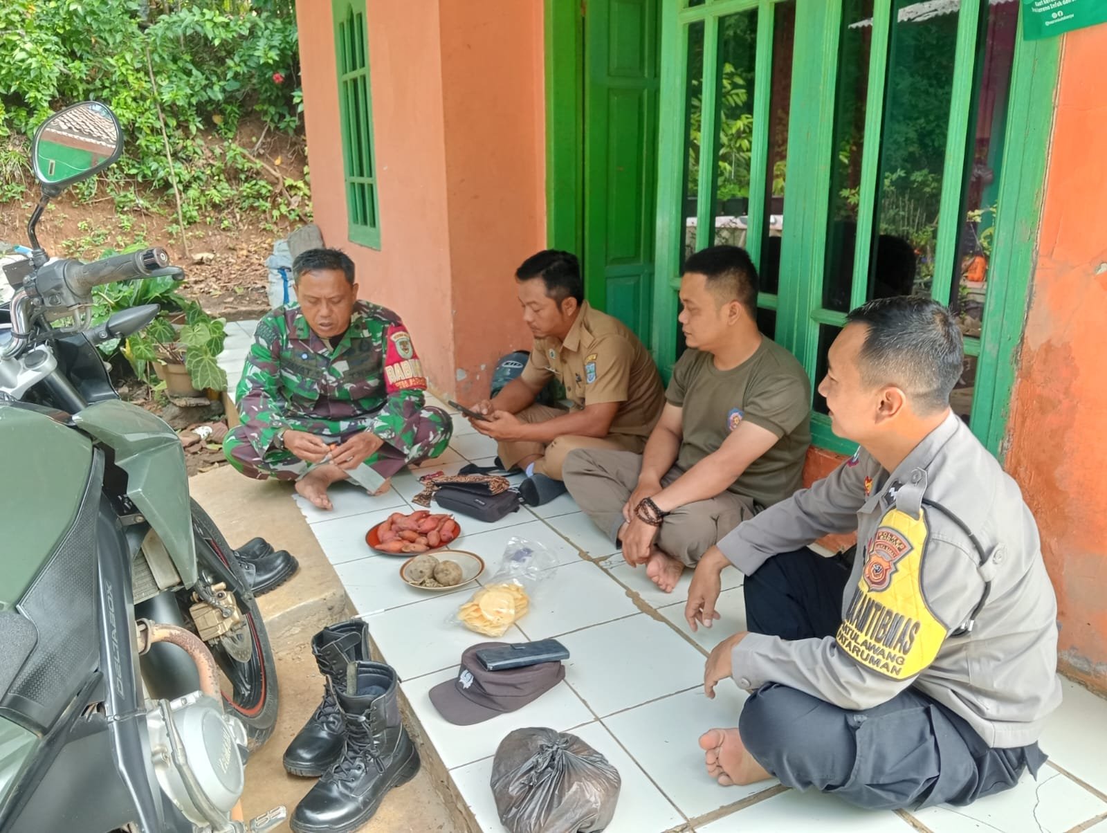 Bhabinkamtibmas Desa Batulawang Polsek Pataruman, Aipda Irfan Hidayat, melaksanakan silaturahmi kamtibmas dengan Kepala Dusun Karangsari, Yayan, di wilayah RT 11 RW 03 Desa Batulawang, Kecamatan Pataruman, Kota Banjar.