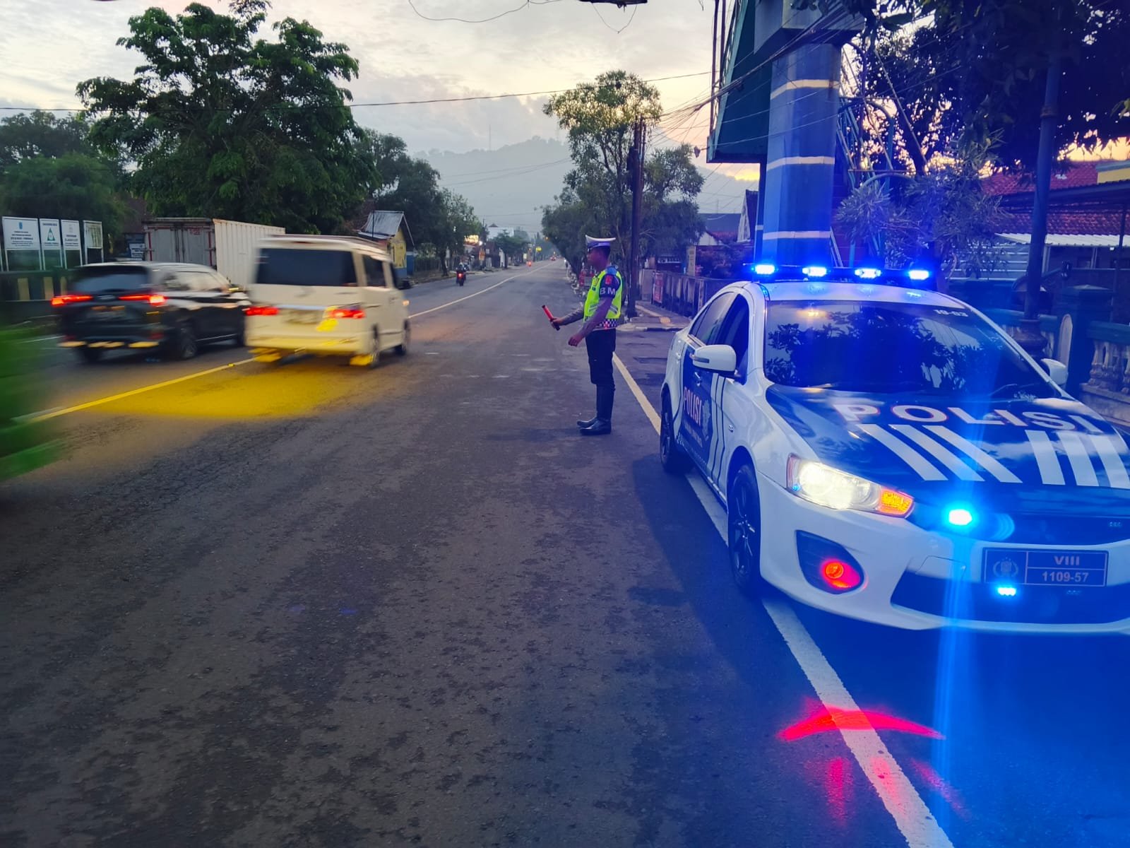 Tak berselang lama, patroli kembali digelar pada pukul 05.45 WIB di Jalan Nasional Brigjen M. Isa dengan fokus pada pemantauan arus lalu lintas guna menjaga situasi tetap kondusif di jalur utama.