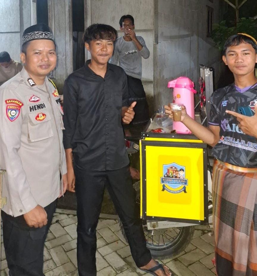 SERANG, — Pemandangan berbeda tampak di wilayah Kecamatan Carenang setiap malam Ramadan. Sebuah sepeda motor dinas polisi yang dimodifikasi menjadi gerobak kopi keliling berhenti di tengah kerumunan warga usai salat tarawih. Di balik gerobak bertuliskan “Warbin Keliling merupakan cara efektif dalam menyerap Aspirasi Cari Solusi”, seorang anggota Bhabinkamtibmas berdiri menyeduh kopi, bukan sekadar untuk menghangatkan malam, tetapi juga membuka ruang dialog.