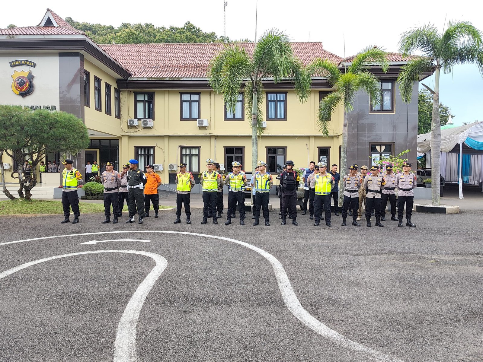 Apel kesiapan tersebut dipimpin langsung oleh Kapolres Banjar, AKBP Didi Dewantoro, S.I.K., S.H., M.A.P., dan diikuti oleh para Kabag, Kasat, perwira, serta seluruh personel yang terlibat dalam pengamanan. Turut hadir pula unsur lintas sektoral di antaranya Sub Denpom Banjar, Koramil, Sat Brimob, Satpol PP Kota Banjar, Dinas Perhubungan, BPBD, ORARI, PMI, serta Saka Bhayangkara.