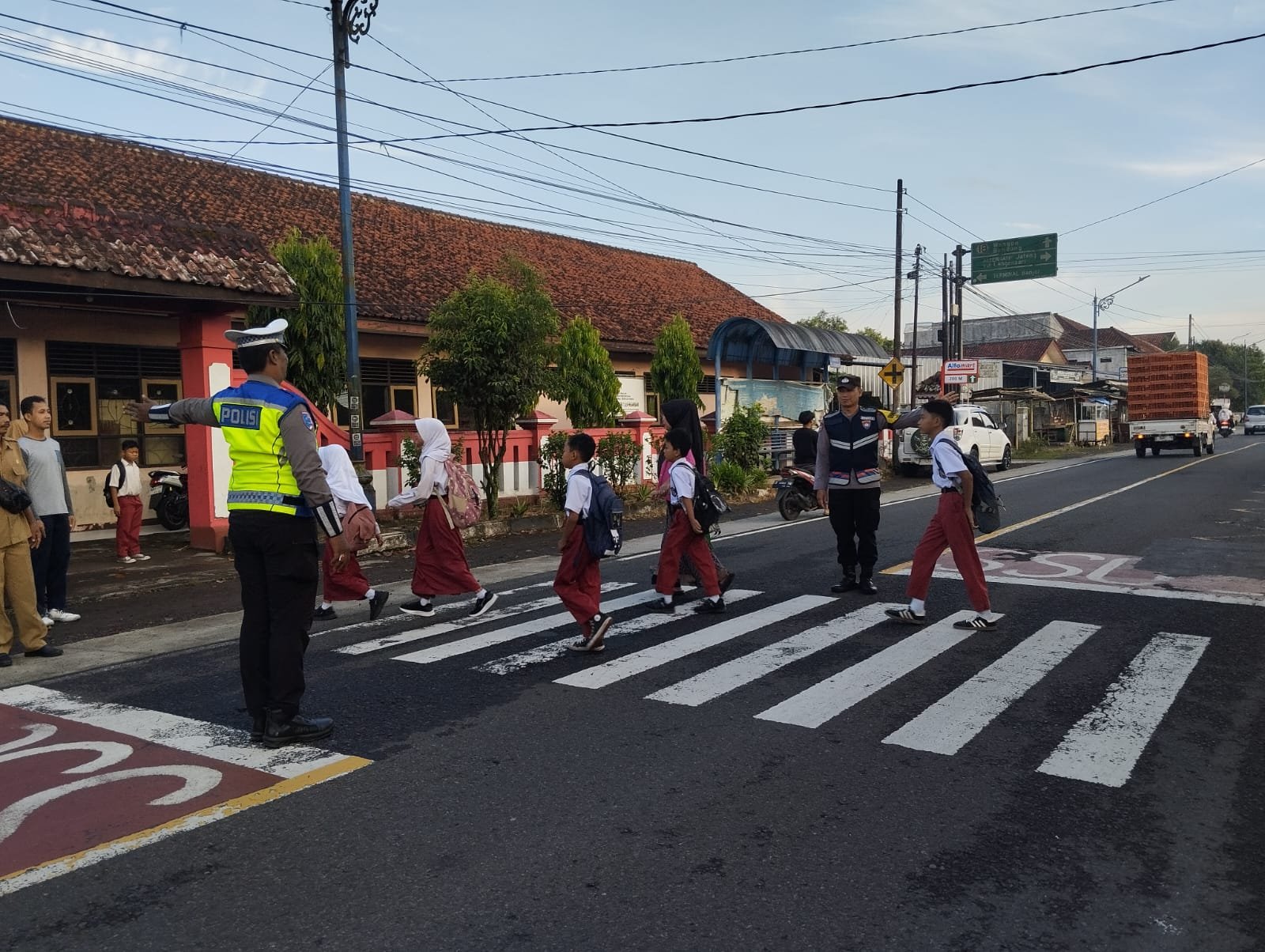 Strong Point Pagi Polsek Pataruman, Polisi Hadir di Sekolah dan Simpang Jalan, Lalin Tertib Masyarakat Nyaman