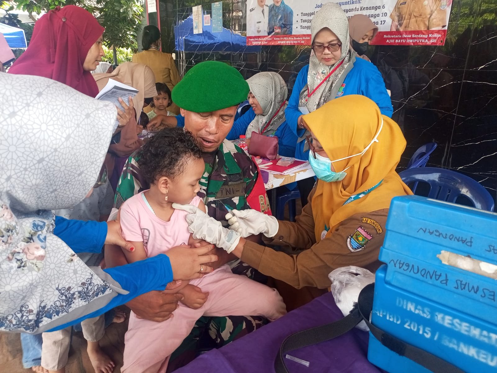 Babinsa Desa Serdang Kulon, Serma Suan J, menegaskan bahwa TNI tidak hanya berperan dalam pertahanan, tetapi juga aktif menjaga kesehatan masyarakat.